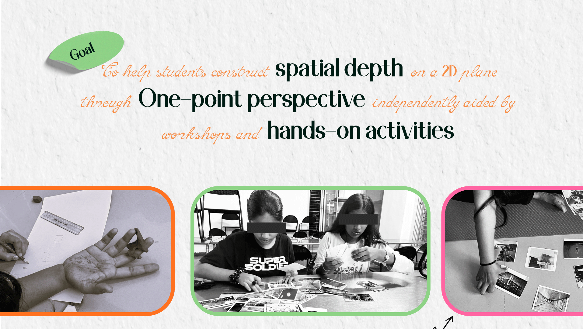 This project was designed to foster children’s curiosity and strengthen their confidence in art, with a particular focus on 3D object rendering. As perspective drawing is often a difficult concept for beginners, especially students aged 10 and above who are developing spatial visualization skills, the project sought to simplify the learning process. It did so by creating a more engaging, interactive, and school-friendly approach to teaching perspective drawing.
